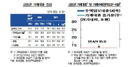 한은은 "부채의 큰 폭 증가를 수반한 자산가격의 빠른 상승 등 금융불균형 누적은 적정 수준을 넘어설 경우 금융시장 불안 및 소비 등 실물경제 위축요인으로 작용할 수 있다"며 "완화적 금융여건 하에서의 금융불균형 누적에 더 유의할 필요가 있다"고 강조했다.