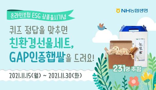 NH농협생명은 금융소외계층을 위한 상품인 '효밍아웃NH부모님안전보험(무)' 출시를 기념해 'ESG 상품 출시 퀴즈 이벤트'를 실시한다고 15일 밝혔다.