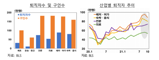 팬데믹 구인난으로 공급자 우위시장이 형성됨에 따라 더 좋은 조건의 임금과 근로환경을 위한 퇴직도 급증한 것으로 보인다.
