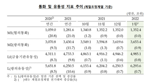 2022년 1월중 통화 및 유동성