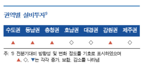 향후 설비투자 전망은 수도권과 제주권 지역에 대한 기대감이 모이고 있는 상황이다.
