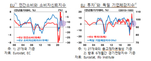 한-EU 간 교역구조를 감안할 때 우리나라의 대EU 수출은 EU의 내수 둔화 및 공급망 차질 영향을 적지 않게 받을 것으로 예상된다.