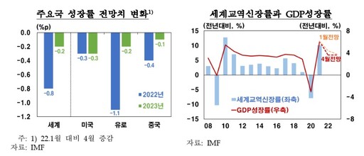 세계교역에 미치는 주요 여건을 점검해 본 결과, 국제원자재 가격 상승에 따른 파급효과 및 중국의 제로코로나 정책 유지 등과 관련된 하방리스크가 크다는 평가다.