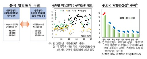 우리 경제 수입공급망은 글로벌 수준 대비 원자재(광물·에너지·석유류 등) 부문 취약성이 높고, 취약품목의 대중국 의존도가 심화됐다. 다만 자본재(전자·기계·운송기기 등)는 우리 기업의 글로벌 수출경쟁력 등에 힘입어 상대적으로 양호했다. 일부 고기술품목(반도체 관련 장비, 정밀기기 등)은 한국특화 취약성을 드러내는 등 위험이 잠재됐다.