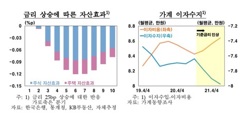 즉, 금리 상승기에 대출금리가 예금금리보다 빠르게 상승하며 가계의 이자수지가 악화되면서 소비여력에 부정적인 영향을 끼칠 수 있다는 것.