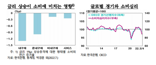또 향후 글로벌 경기 둔화 및 금리 상승의 속도와 그 폭에 따라 민간소비 회복경로에 하방 압력이 더 커질 수 있다는 평가다.