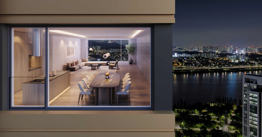 여기에 세대 내부는 대형 조망창과 한강으로 열린 LDK 평면을 적용해 시야 간섭을 최소화하는 등 한층 개방된 조망감을 확보했다. 좁은 창을 통해 일부만 보이는 조망이 아니라 거실과 주방 등 생활 공간 전반에서 한강의 풍경이 자연스럽게 펼쳐지는 특별한 주거 경험을 선사할 예정이다.